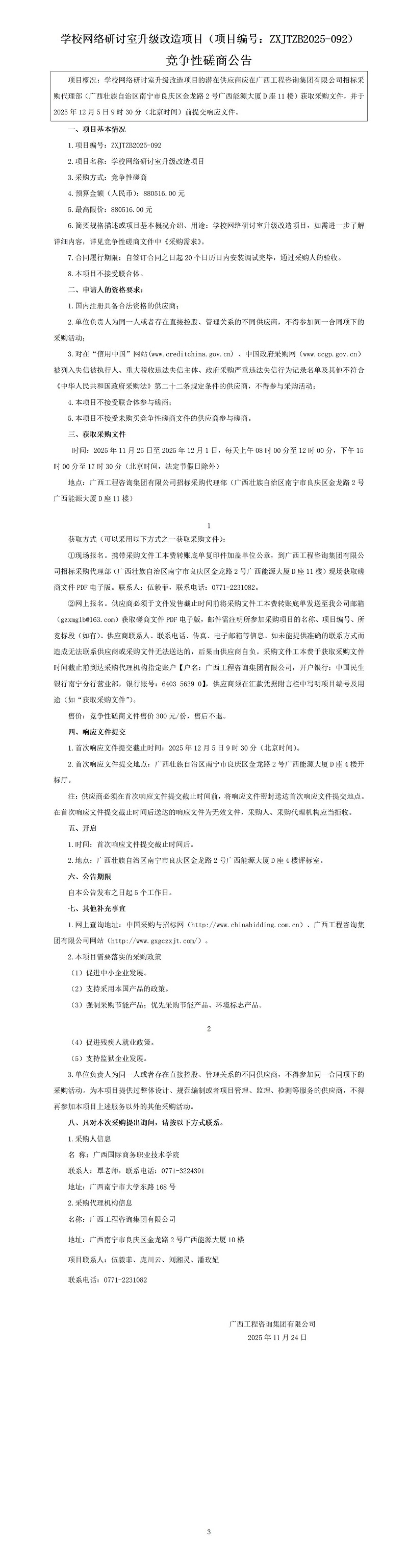 學校網(wǎng)絡(luò)研討室升級改造項目(項目編號:ZXJTZB2025-092) 競爭性磋商公告