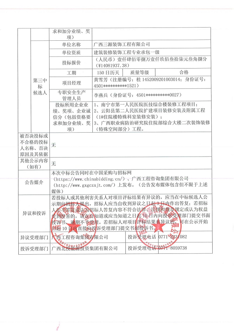 廣西能源大廈辦公場所裝修工程(12、19、20樓)施工招標(biāo)中標(biāo)候選人公示