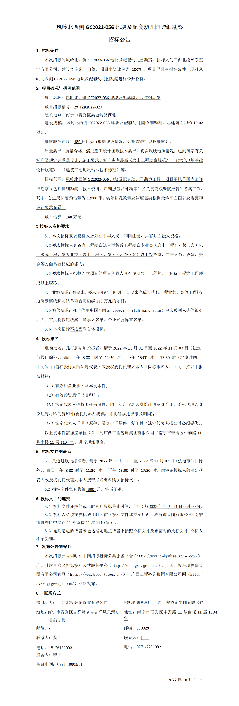 鳳嶺北西側(cè)GC2022-056地塊及配套幼兒園詳細勘察招標公告