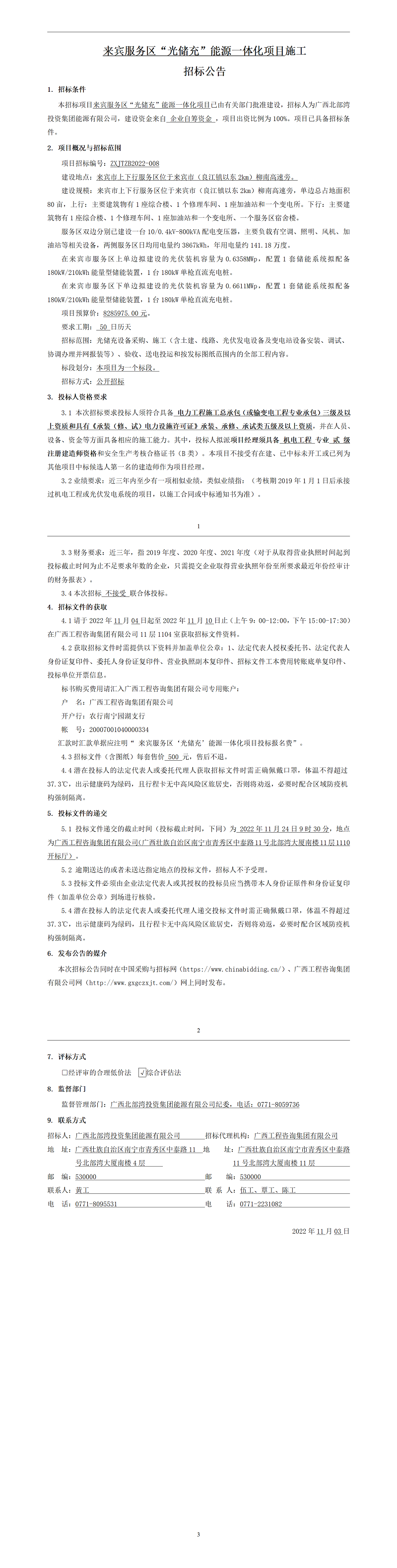 來賓服務(wù)區(qū)“光儲(chǔ)充”能源一體化項(xiàng)目施工招標(biāo)公告