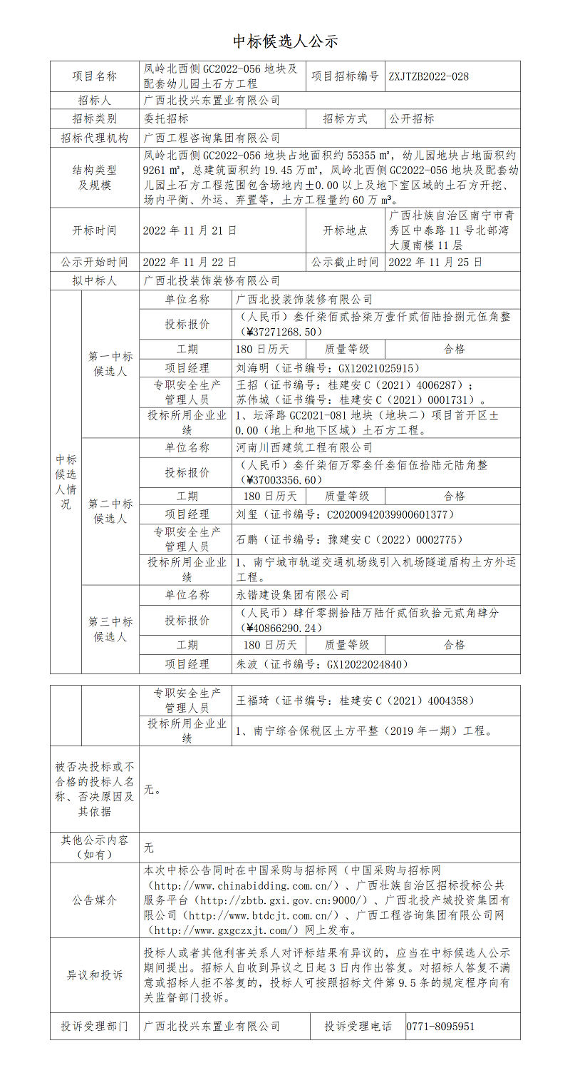 中標(biāo)候選人公示