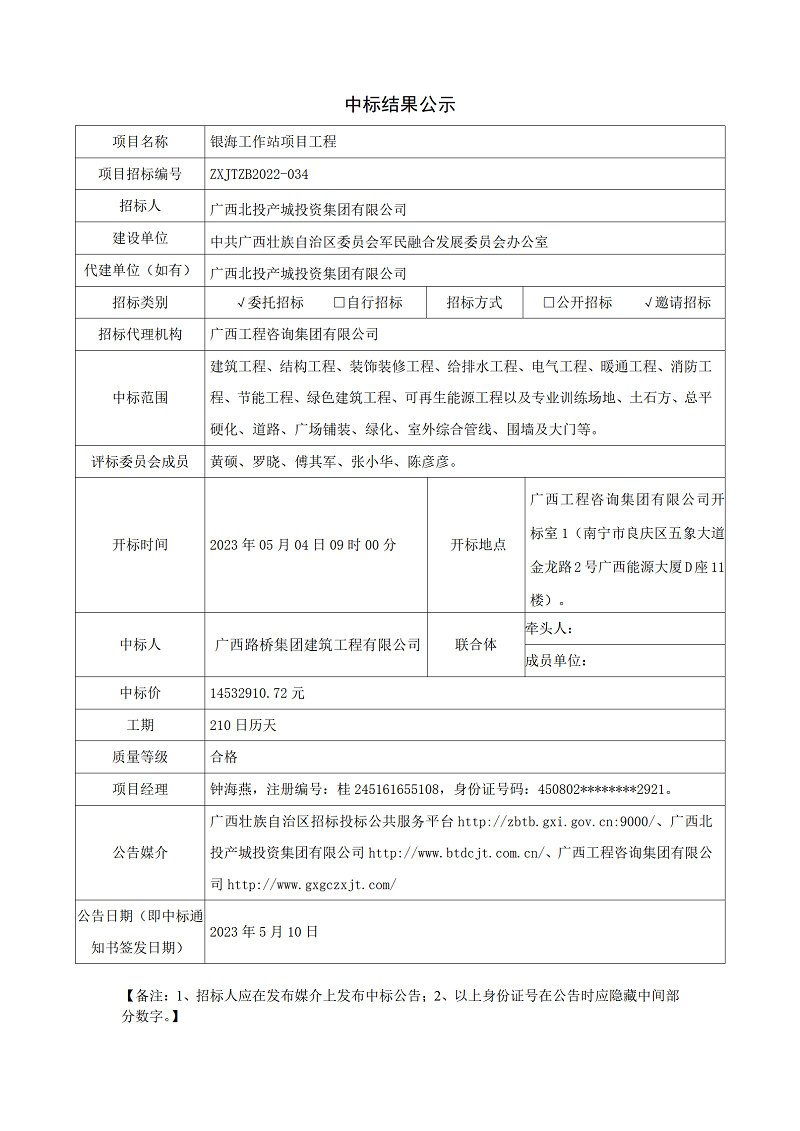 中標結(jié)果公示
