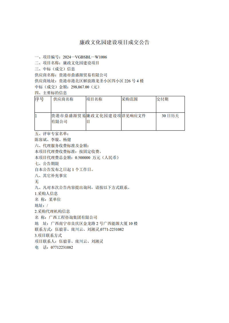 廉政文化園建設(shè)項目成交公告